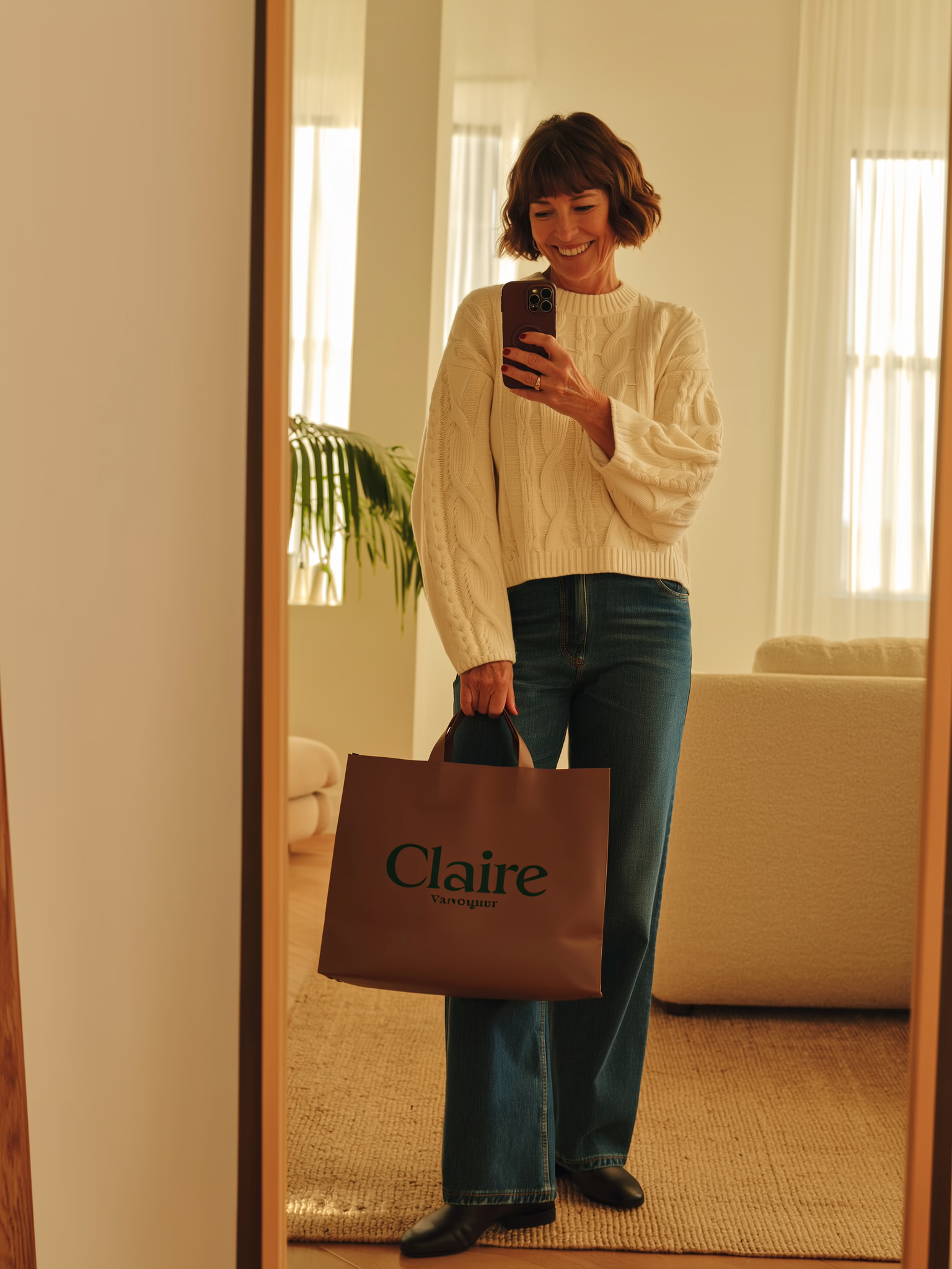 I’m Claire, and I started this boutique with one simple idea: women deserve clothing that feels good, fits real life, and doesn’t try too hard. Like many women in Canada, I’ve juggled family, work, aging, change all of it. And somewhere along the way, I realized how hard it is to find pieces that feel comfortable, flattering, and true to who we are now… not who we were at 20.